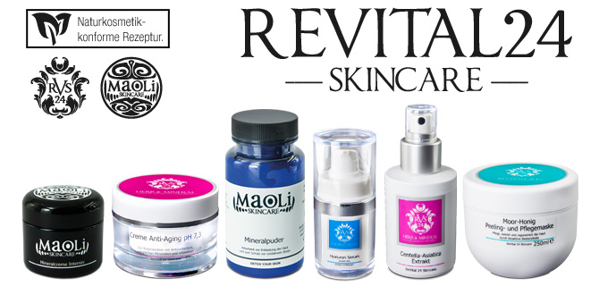 Seit Januar 2018 hat sich das Design und der Markenname geändert. Die markenrechtlich geschützten neuen Logos RVS24 mit den bewährten drei Produktlinien sowie Maoli Skincare Naturmineralien in neuer zeitgemäßer Optik. Die Inhalte bzw. Produkte sind in gewohnter Qualität und unverändert in der Rezeptur.